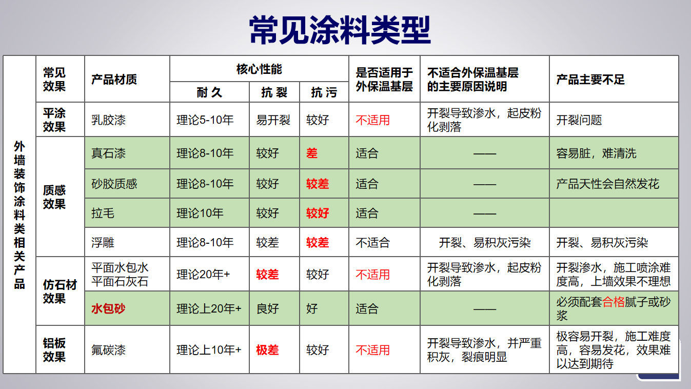 為了保證面漆的完整性效果,采用外墻專用找平膩子,附著力好、強度高、防裂縫、起泡等現象。
